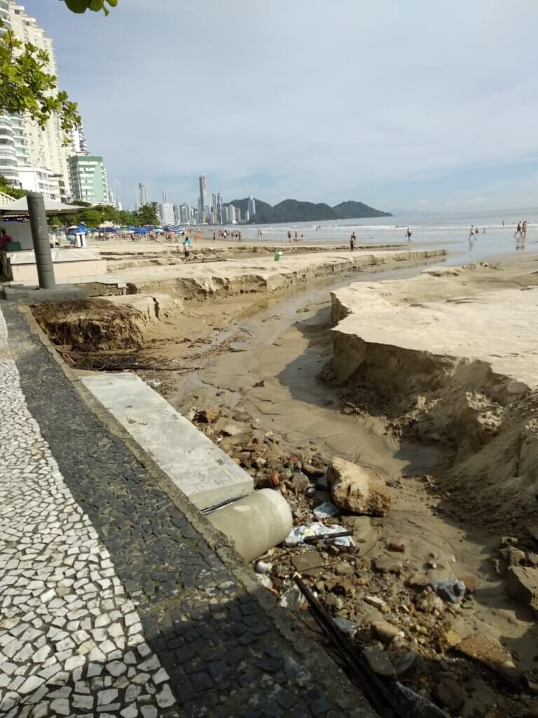 Um forte temporal ontem à noite (13), causou enorme estrago na praia de Balneário Camboriú. O estrago foi grande, causando muitos buracos e fendas na areia. A prefeitura já está mobilizando para amenizar os prejuízos causados. A administração pede também, que se possível os banhistas não entrem na água hoje.