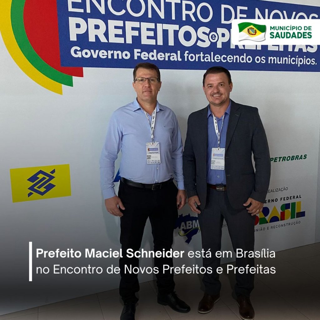 Nesta semana, o prefeito Maciel Schneider, está em Brasília, onde participa do Encontro de Novos Prefeitos e Prefeitas, Nesta semana, o prefeito Maciel Schneider, está em Brasília, onde participa do Encontro de Novos Prefeitos e Prefeitas,promovido pelo Governo Federal. O evento atinge gestores municipais de todo o Brasil, com a oportunidade da troca de experiências e debates de políticas públicas.