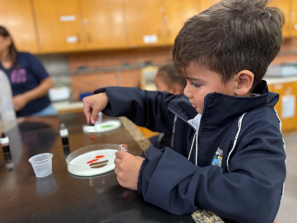 Durante a visita, os alunos exploraram um ambiente científico real, observaram reações químicas, manusearam materiais e conversaram com profissionais da área. Uma vivência que ampliou o repertório de conhecimentos por meio da observação, da escuta atenta e da experimentação.