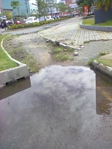 Depois quando eu falo que a administração Edson Piriquito (PMDB) faz  tudo mal feito e pela metade, eles dizem que eu sou falador, oposição, entre outras coisas. Nada disso, eu tenho que comentar  sobre quem está governando, quem não está, não tem por que. Na foto fica explicito o quanto esta administração é relaxada, quase todas as obras iniciadas não conseguiram acabar. Nesta leva, não se preocuparam com os moradores e turistas, muito menos os cadeirantes. Esta é apenas uma obra que esta nesta situação, existem várias na terceira e quarta avenidas. Qualquer dia o mosquito da dengue terá que ser combatido nas obras do Piriquito. Piada!