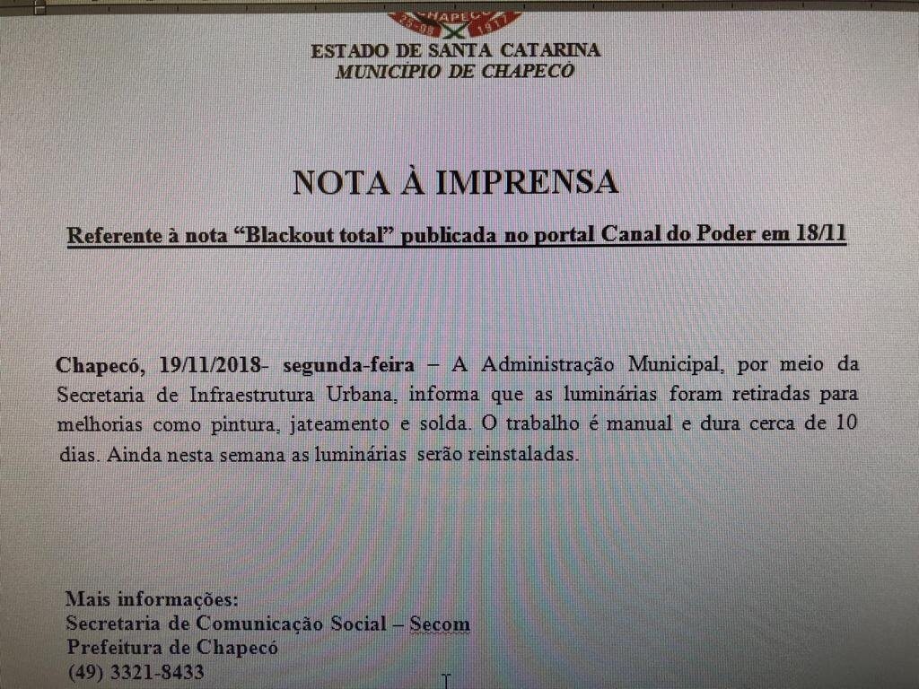 Nota da prefeitura de Chapecó