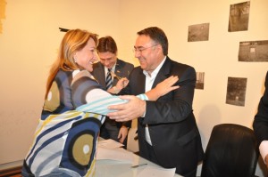 A Prefeita de Camboriú, Luzia Coppi Mathias, assinou na manhã desta segunda-feira, dia 11, em Florianópolis, o contrato de financiamento com o BADESC, no valor de R$ 5 Milhões. O ato foi prestigiado pelo Governador do Estado, Raimundo Colombo, entre outras lideranças estaduais. Durante o seu pronunciamento, representando todos os prefeitos presentes, a Chefe do Executivo Municipal agradeceu a parceria do Governo do Estado com os municípios e disse estar muito feliz com a liberação do recurso para Camboriú. “Este valor irá nos auxiliar muito e conforme já prometi anteriormente, vou investir todo ele em pavimentação urbana. Sem dúvida será um grande presente para a nossa cidade”, declarou. O próximo passo agora é apresentar os projetos das ruas a serem pavimentadas e iniciar as obras. “Vamos dar prioridade aos corredores de ônibus e também as ruas de maior acesso de veículos”, finalizou a Prefeita.