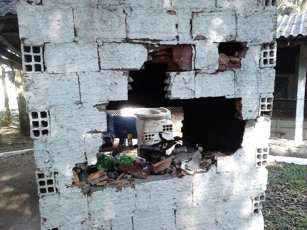 Estas são as condições do parque Alberto Fim em que a prefeitura municipal de Chapecó é responsável pela manutenção. Onde tem um funcionário pago para esse trabalho. Prefeitura alega não ter recurso para restaurar este local.