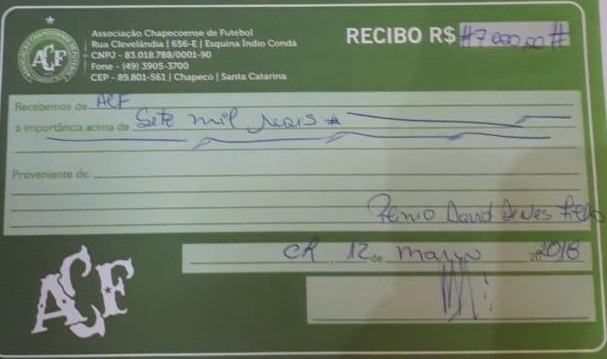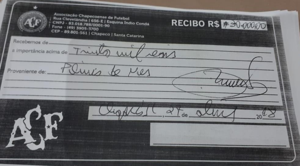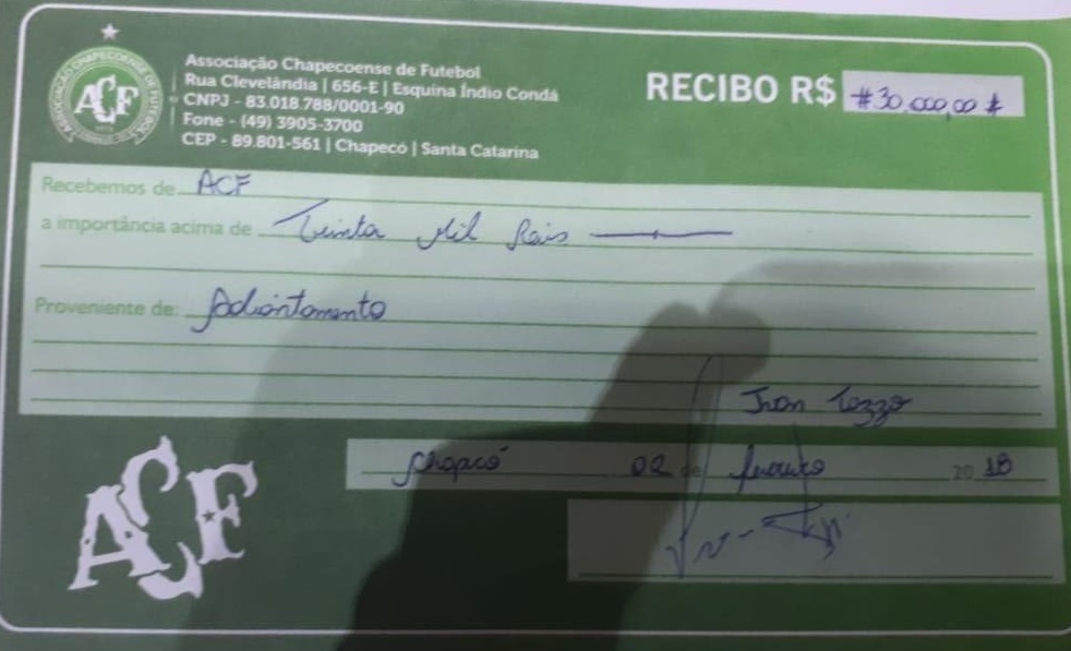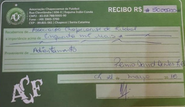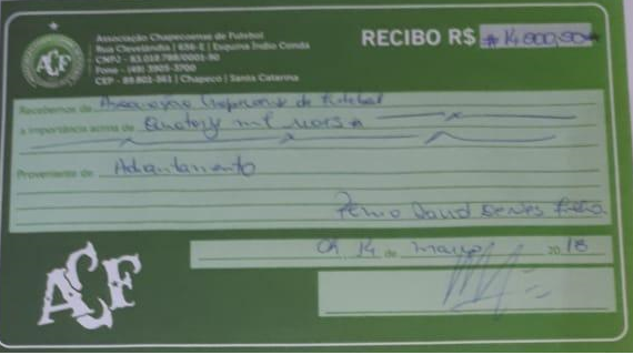 Prova do dinheiro que o presidente e vice receberam da Chapecoense