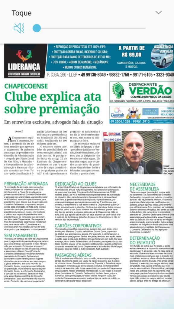 De qualquer sorte não somos os donos da verdade, e nos colocamos a disposição da diretoria da Chapecoense para melhores esclarecimentos, se é que tem como explicar.